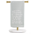 Introducing the God Is Great Hand Towel in Ice/White, measuring 20x28. This elegant hand towel showcases a divine message, making it a perfect addition to any bathroom decor.