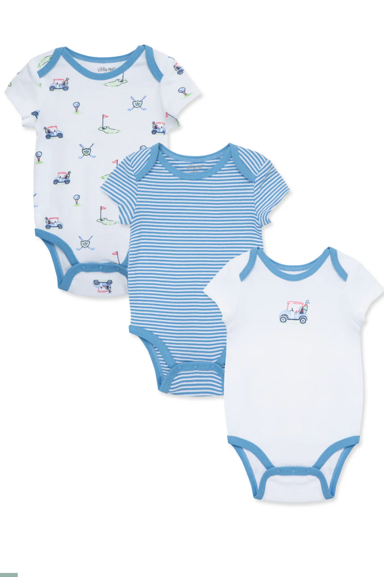 A three-pack of newborn bay boys' golf-themed bodysuits. The perfect essential for his closet.