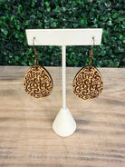 These Happy Easter Wooden Earrings are laser-engraved wooden dangle earrings shaped like Easter eggs with a whimsical "Happy Easter" script. They feature antique-style fishhook wires for easy wear and lightweight construction ideal for seasonal styling. Shabby Stitchery crafted these festive earrings to add a playful, holiday-themed accent to any outfit. The natural wood grain and detailed engraving give each pair a handcrafted, boutique look.