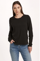 Long sleeve jersey tee, crew neck with self neck band & patch labeling in vintage garment dye wash. The classic simplicity always desired, washed flawlessly for all you do