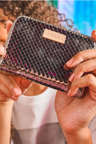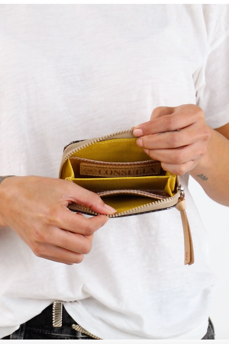 Say hello to Zippy, our newest wallet. This small, but mighty companion has both interior and exterior card slots with a zip closure. Use the D-ring to securely attach Zippy to your bag lanyard or combi wristlet.