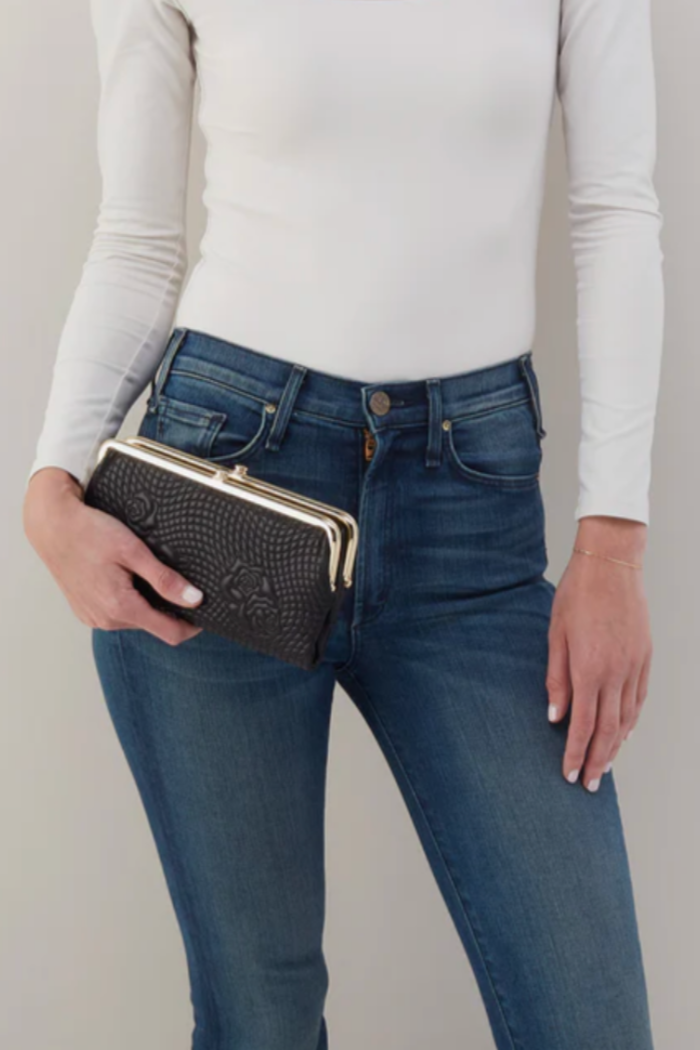 Lauren has a double frame design, making it the perfect hold-everything type of wallet and your favorite clutch.