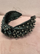 Black leather headband with black bead studs for sass