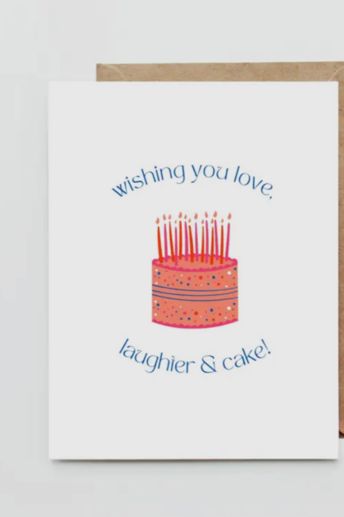 A birthday greeting. Wishing you love and laughter. Blank inside