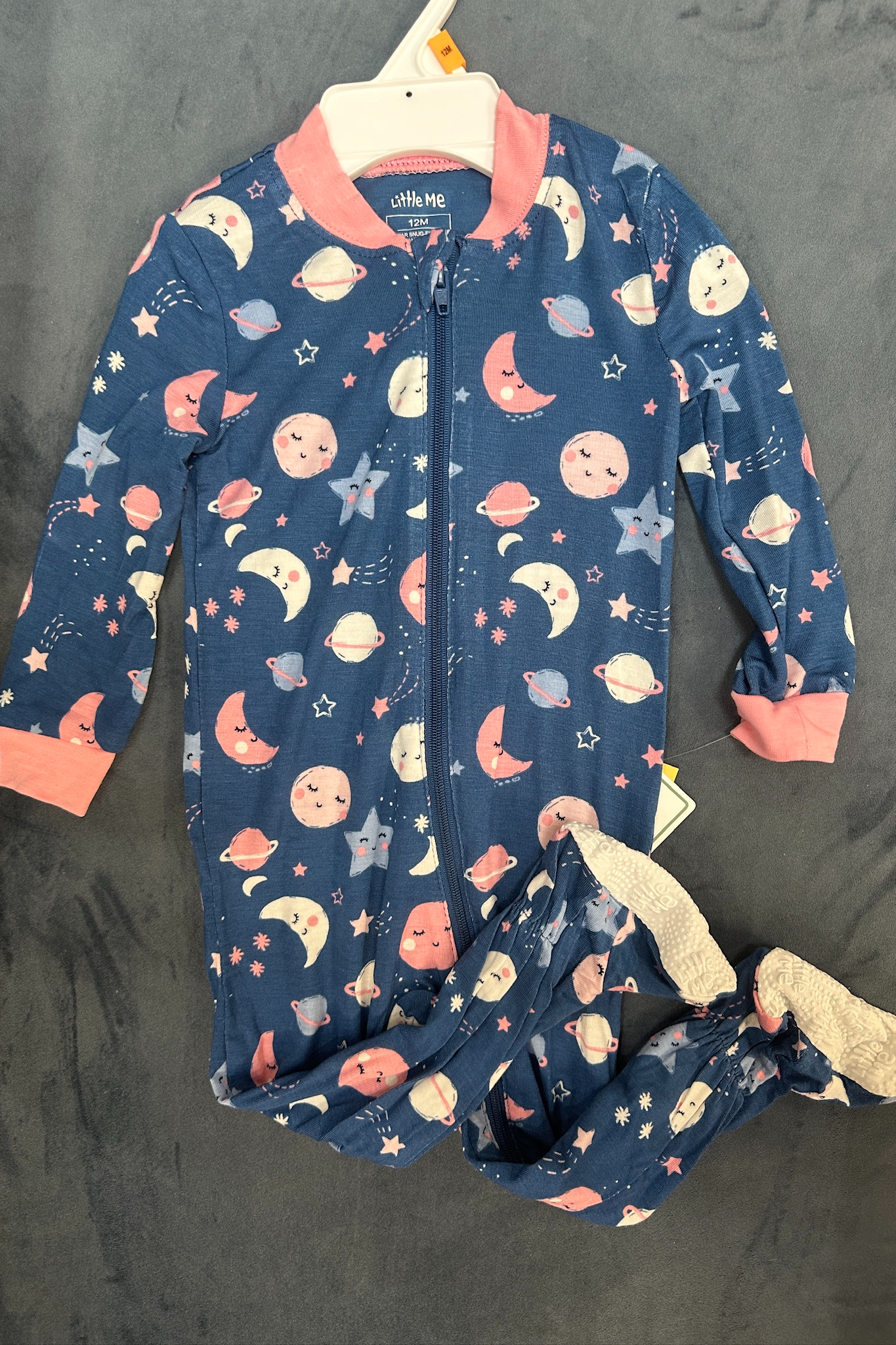 Bamboo footies for little girls with smiling moon and stars