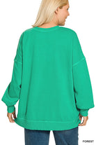 PIGMENT DYE FLEECE HI-LOW HEM PULLOVER WITH POCKET