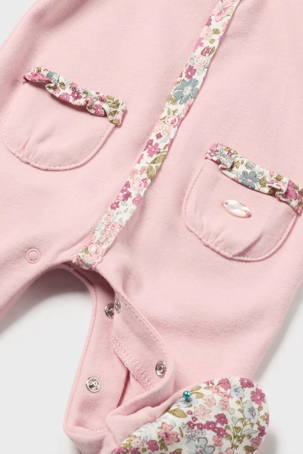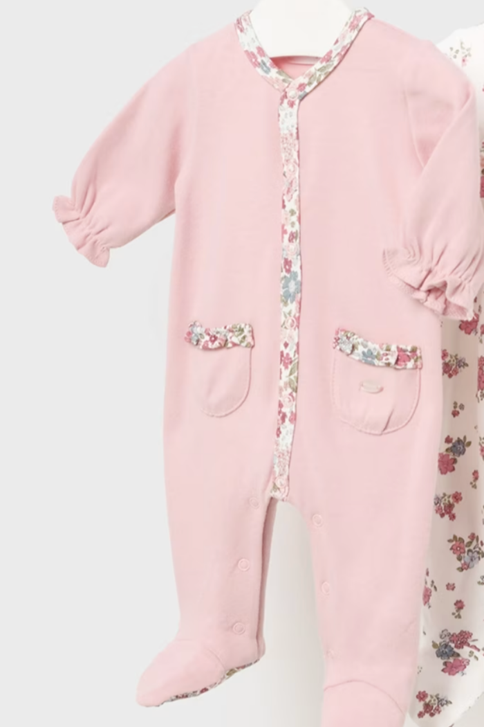 Baby girl snap closure footies with front pockets and ruffle cuff