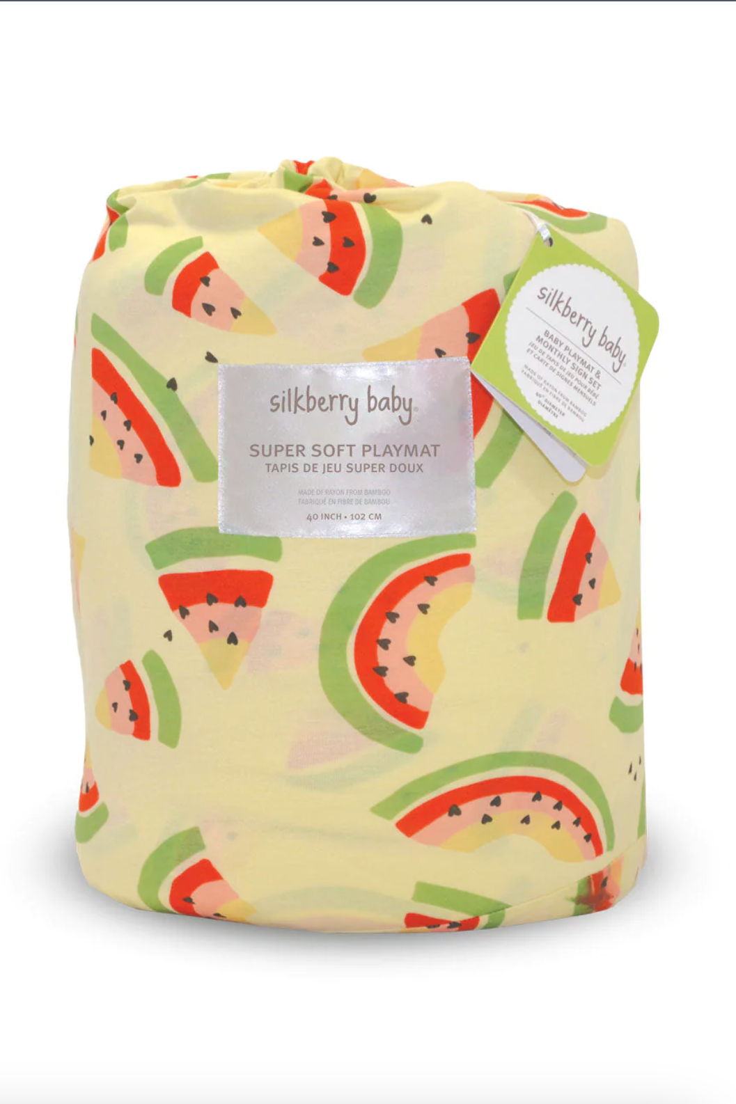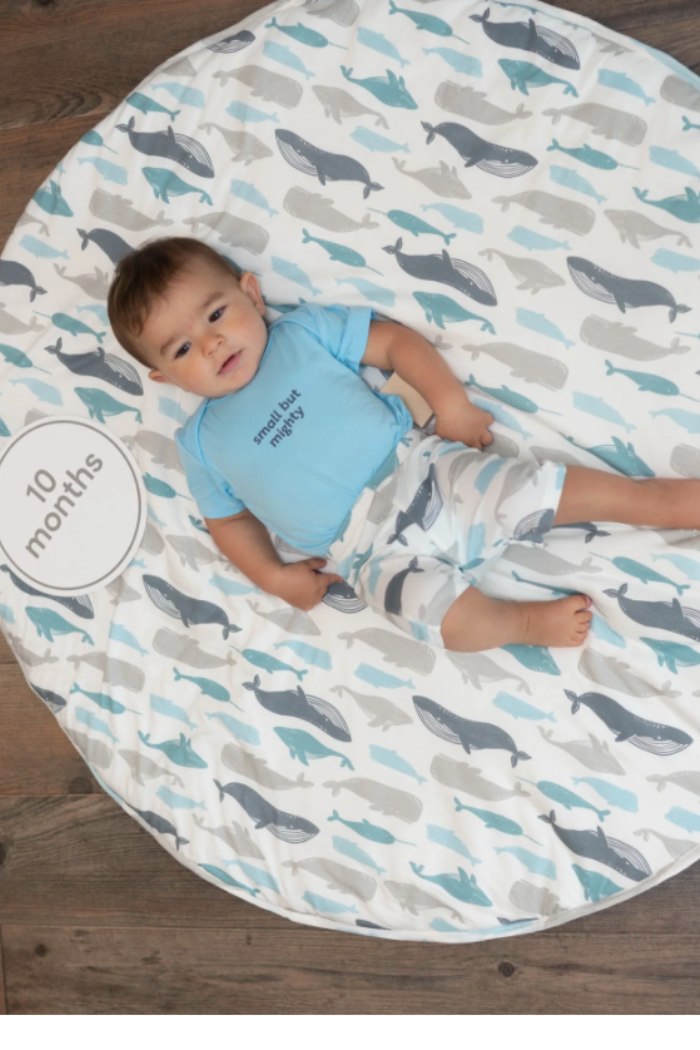 Silkberry Baby® playmats are made of buttery soft bamboo rayon fabric and filled with fluffy polyester batting. They are comfortable, convenient and practical and will quickly become a necessity! Perfect for playtime, tummy time or even outside. Bring this versatile playmat anywhere to make sure your little one has a clean area to sit, crawl, nap and roll. The addition of a monthly sign card set is a perfect photo prop to capture the growth of your new precious baby!