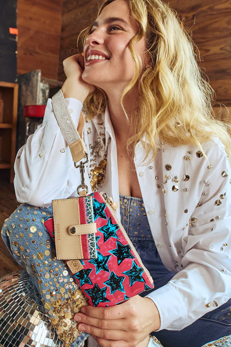 The Combi, a combination of on-the-go accessories, is a new way to carry your keys, cards, and the small stuff together or separately. This colorful wristlet wallet includes a pocket pouch, secure card slot wallet and fits comfortably around your wrist - ready for your next journey.