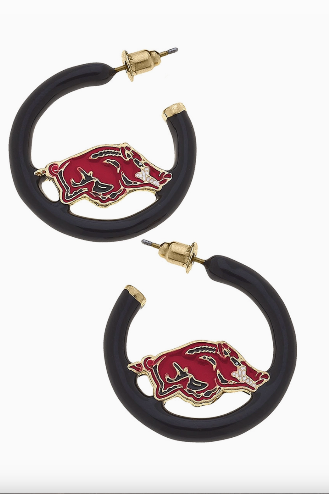 Complete your game day look with these Arkansas Razorbacks Enamel Logo Earrings in Cardinal/Black. Perfect for tailgates or showing off your team spirit!