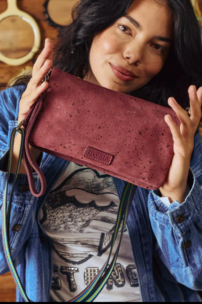 We dreamt up the best way to carry the good stuff with our new Uptown Crossbody. Here to hang in style with three zipper compartments, six card holder slots, and an included wristlet strap, this suede crossbody bag makes it easy to hold the necessities close by your side.