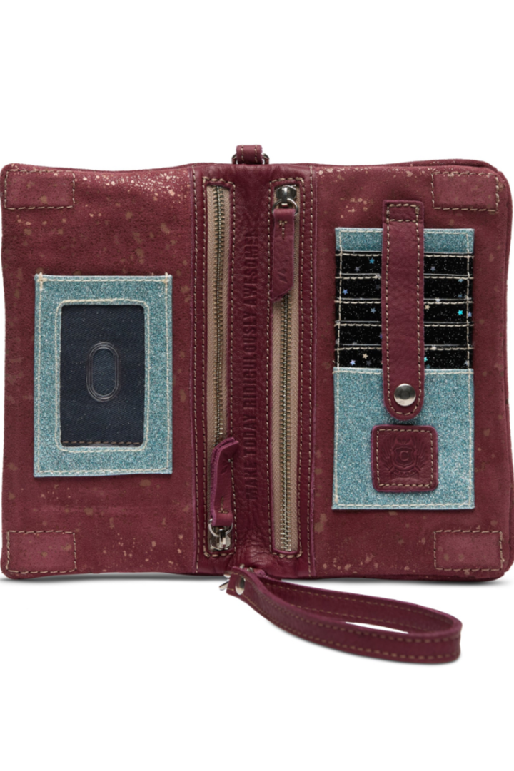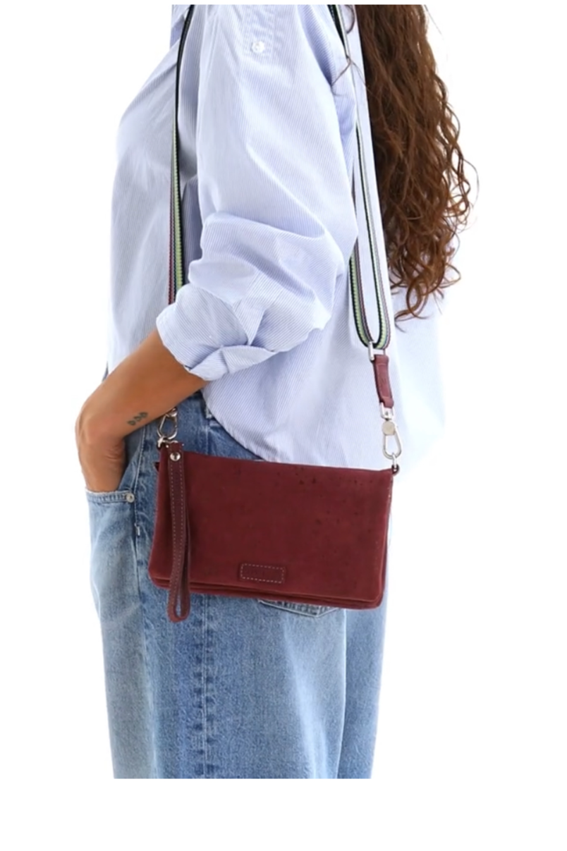 Included detachable wristlet strap and adjustable woven crossbody strap