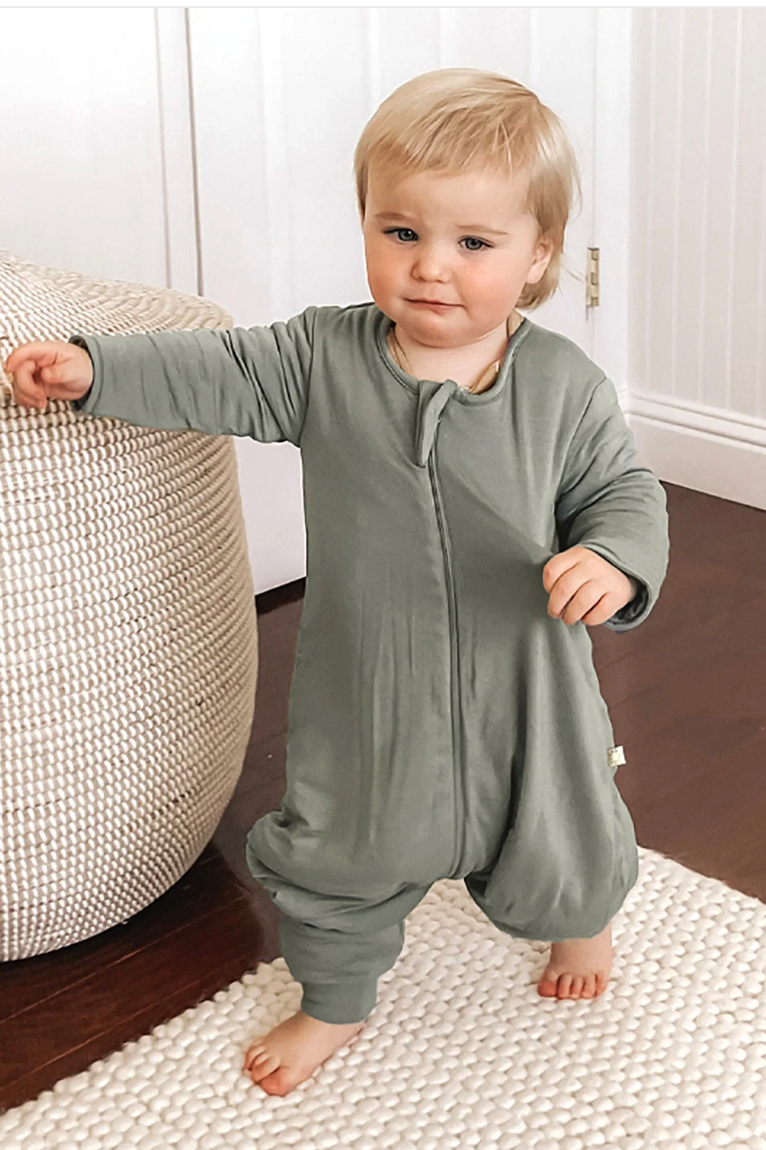 Watch them sleep in it. Watch them walk in it. Watch them get undressed for potty or diaper changes without getting undressed at all. Our new genius footie sleep bag with long sleeves features our signature DIAPER-ZiP® and a separate leg design with convertible foot cuffs that flip open or closed. The anti-slip grips mean no slips or slides, just smooth moves. And of course, we’ve combined E-Z diaper changes with yummy comfort. Cuz we do that.