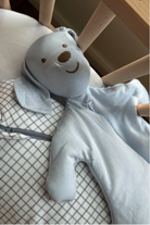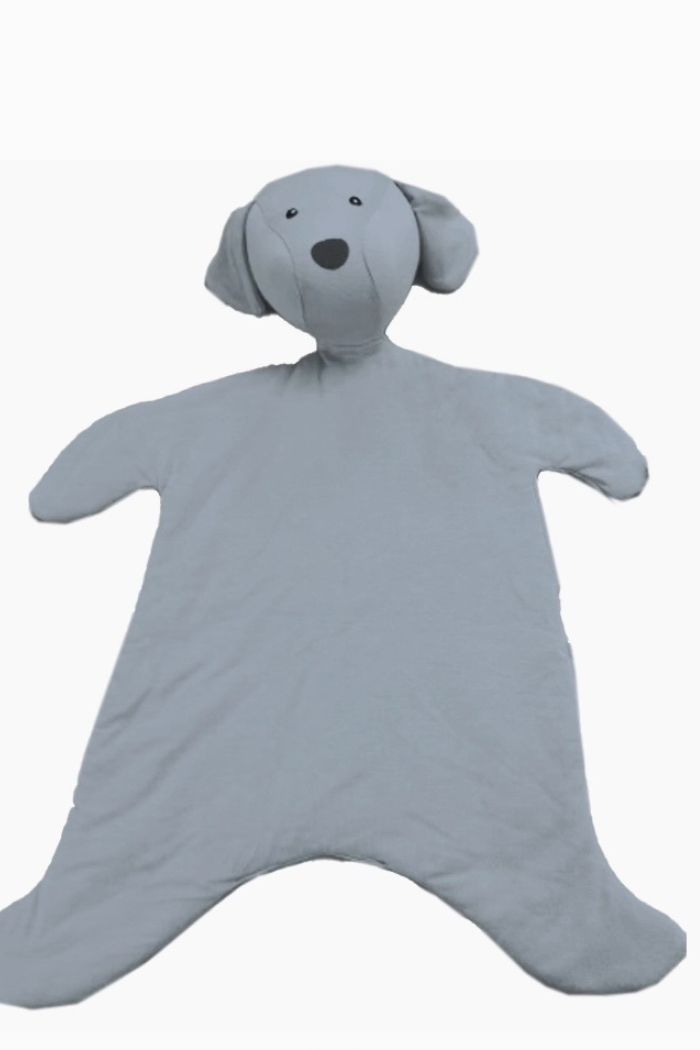 A soft security lovey shaped like a puppy, perfect for newborn cuddles. The Sammy Lovey Pup is made from plush, lightweight fabric with embroidered facial details and floppy ears for tactile comfort. Gunamuna designed this cuddly blanket to be an easy-to-grip comfort object for naps and soothing at home or on the go.