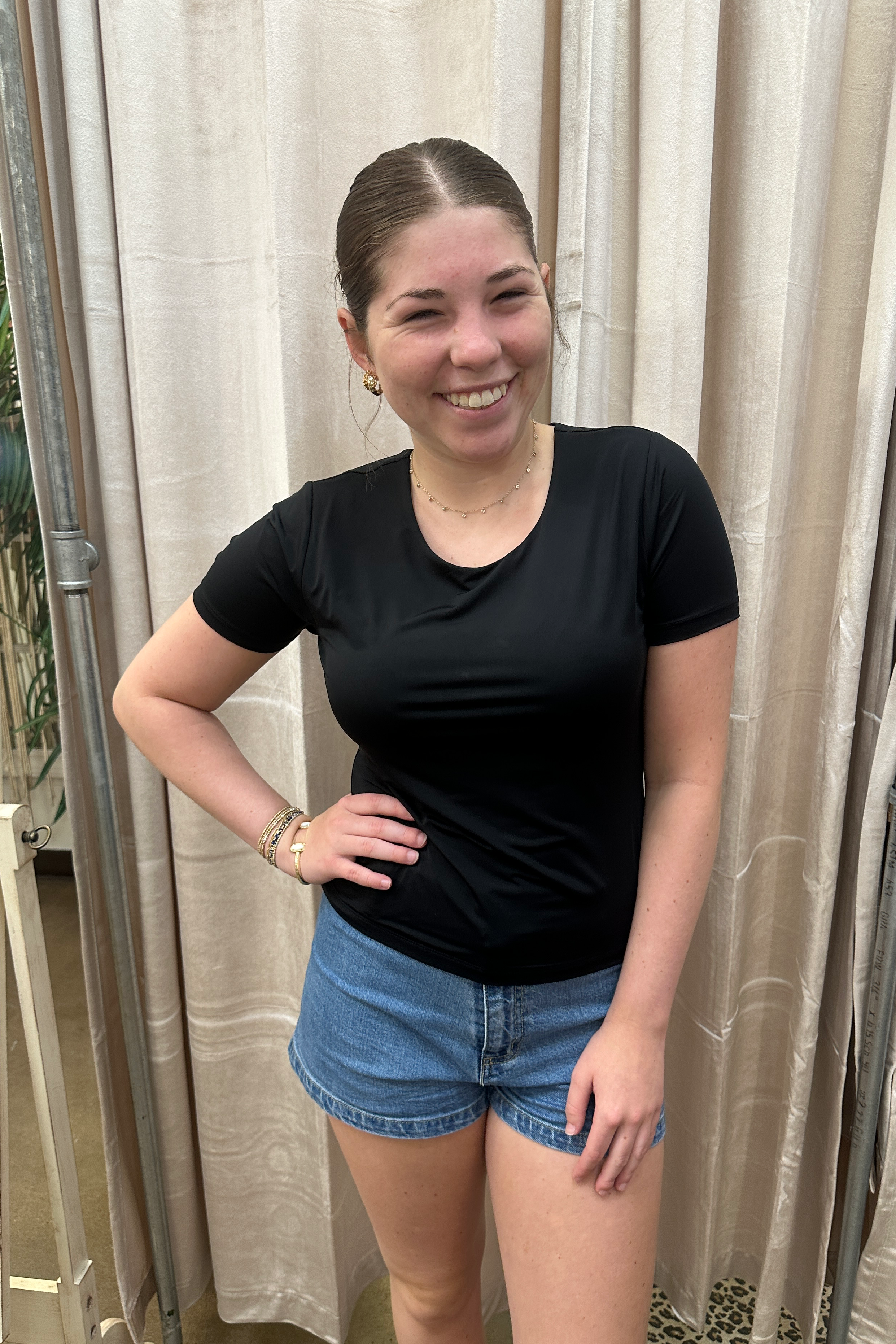 Complement your closet with the Seema crew neck in short sleeve double layered tee. The perfect blend of style and comfort, an essential boasts a flattering crew neck design, offering a seamless fit for every occasion. The double-layered construction not only adds a touch of elegance but also ensures superior comfort, making it a standout piece in the realm of comfortable clothing for women.