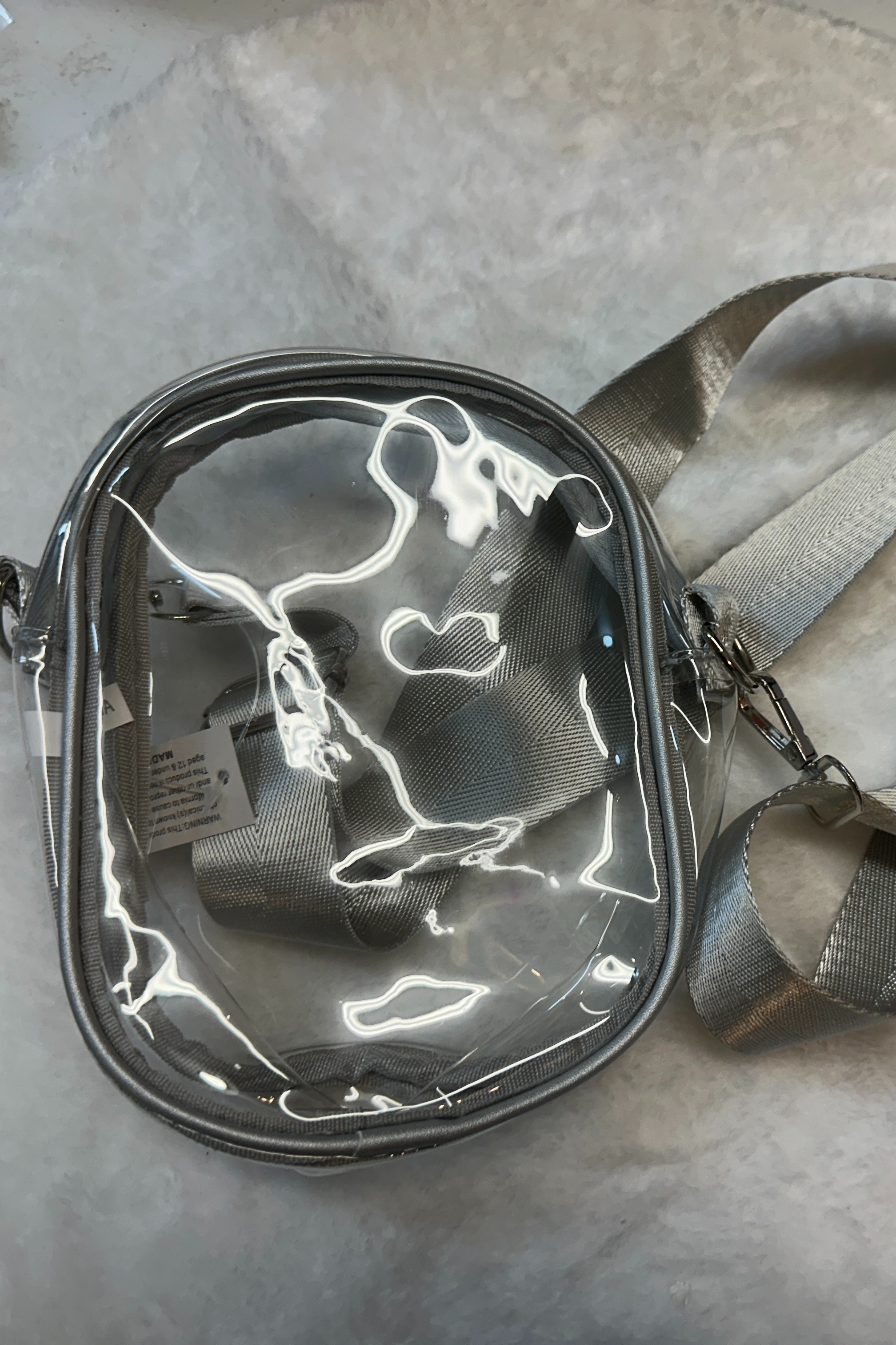 Silver small clear bag with removable and adjustable strap
