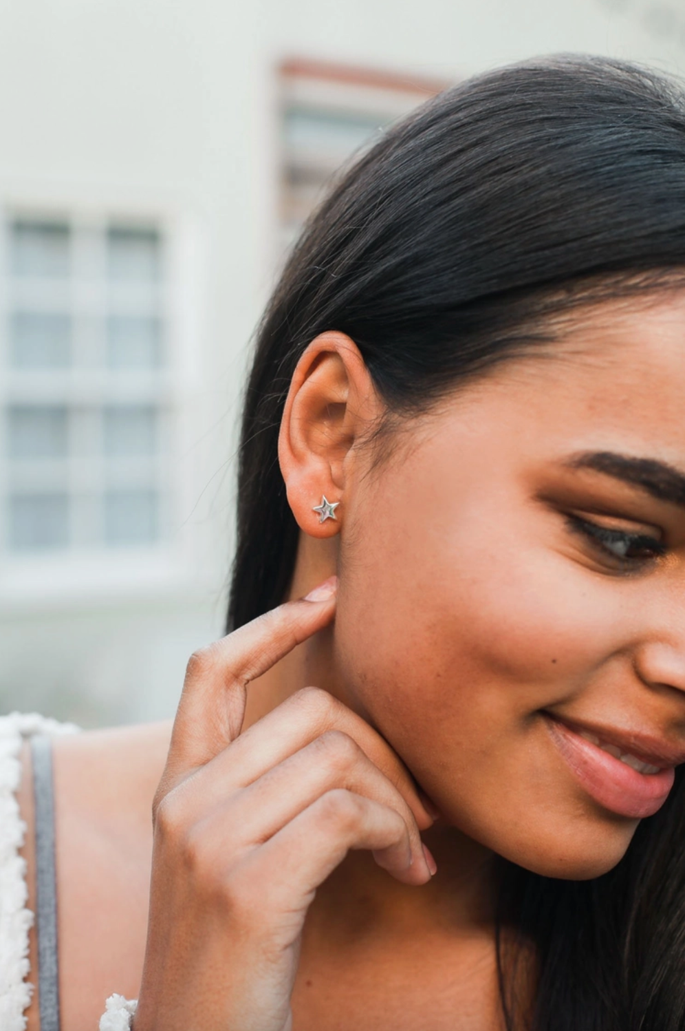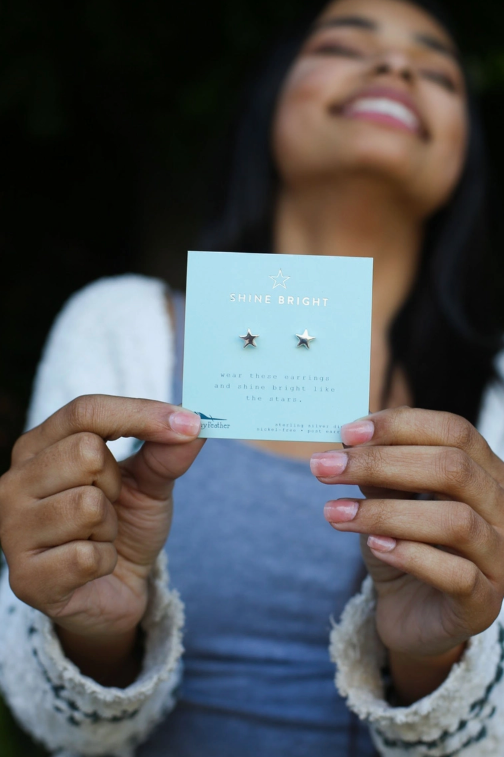 SHINE BRIGHT with our dainty sterling silver star studs. Wear them and shine bright like the stars.