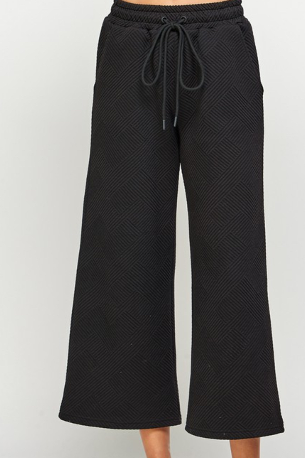 Textured crop pants are elastic waist,so soft and easy to wear. See matching top to make it a set.