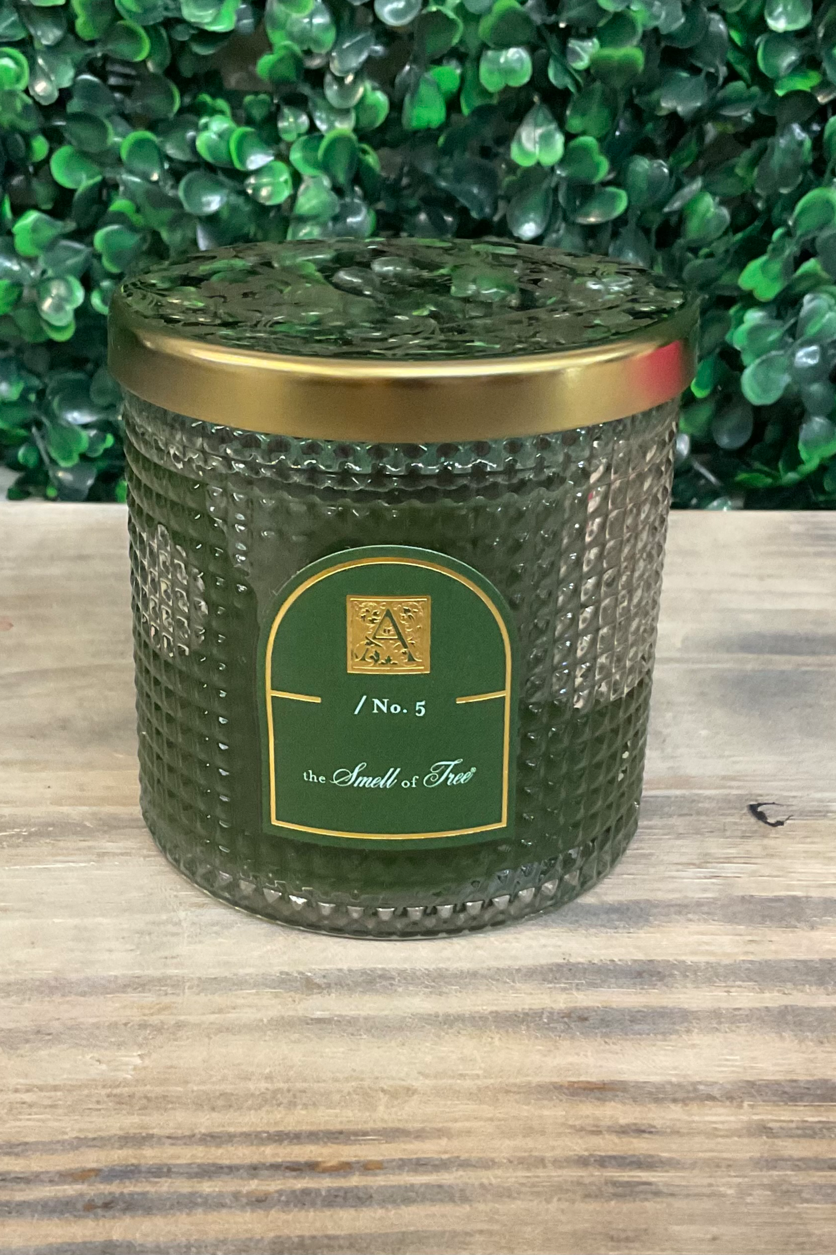 This glass jar candle fills a room with a fresh evergreen aroma. The Smell of Tree Diamond Candle pairs a textured green glass vessel with a gilded lid for an elevated tabletop accent. Aromatique infuses the wax with a pine-forward fragrance that suits living rooms, entryways, or seasonal displays. The sculpted container also makes it an attractive gift-ready home scent.