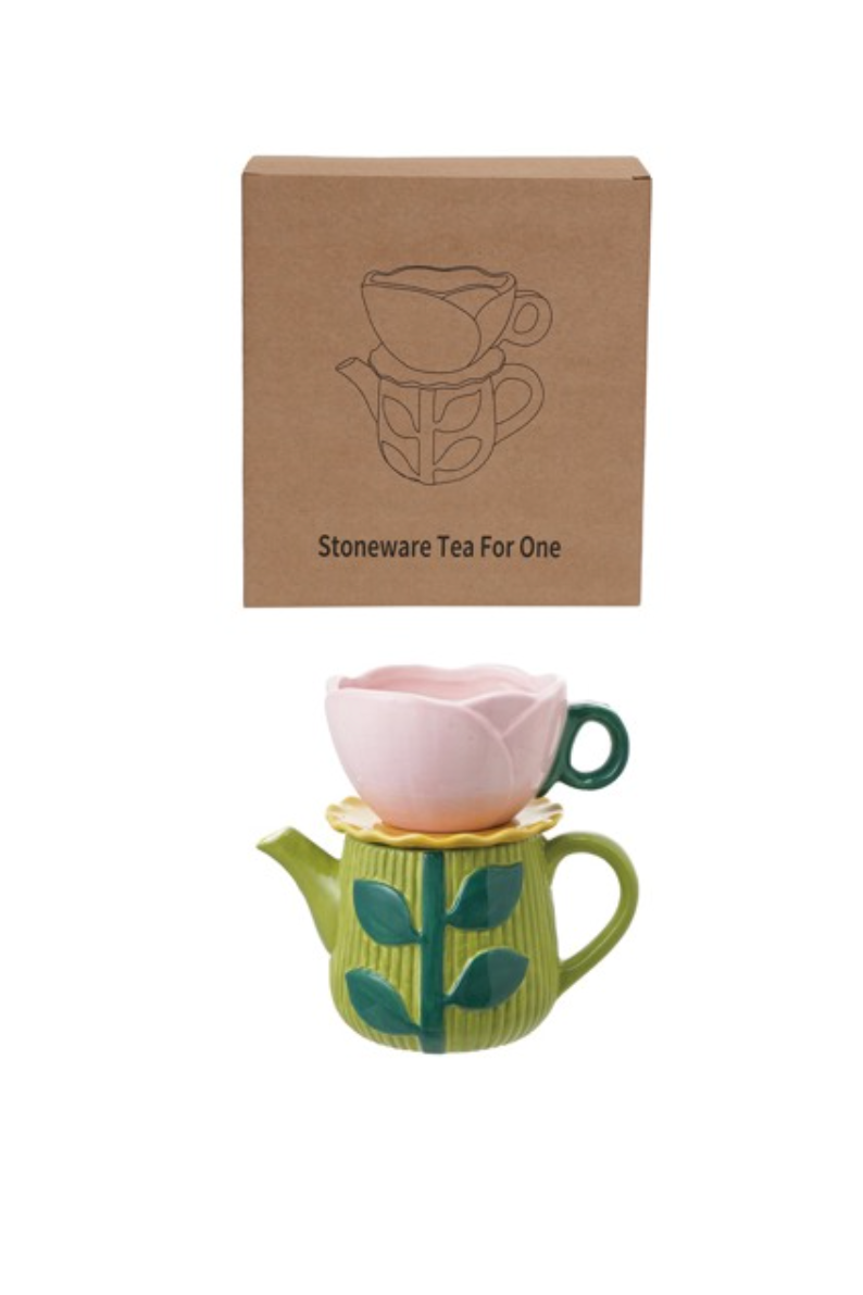 This charming ceramic teapot set is not only functional but also adds a touch of elegance to any tea time. The delicate rose-shaped mug and saucer complement the 7-1/4" teapot beautifully, making serving and enjoying tea a delightful experience. Perfect for brewing your favorite loose leaf teas, this set is a lovely addition to any tea lover's collection. It also makes a thoughtful gift for friends and family, allowing them to enjoy a relaxing cup of tea in style. Treat yourself or someone special to this lovely teapot set and elevate your tea-drinking experience.