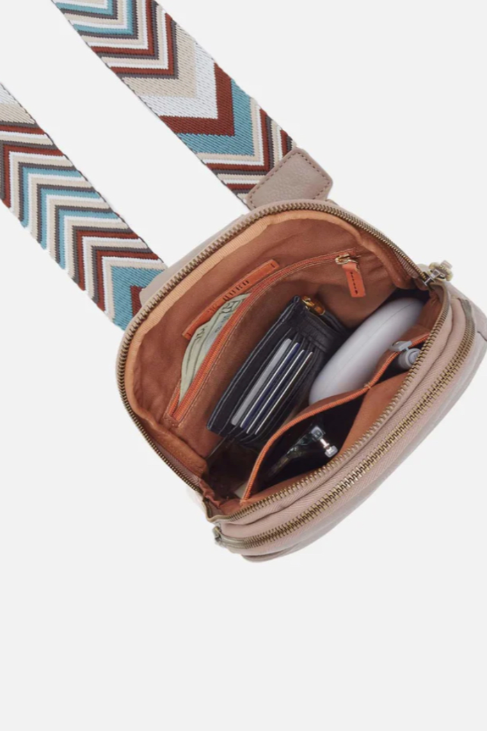 When you have your hands full, Cass Sling’s the hands-free hero right there to help. Plenty of interior space, a new chevron webbing strap, and adjustablity - more than a bag, Cass is your sidekick in style
