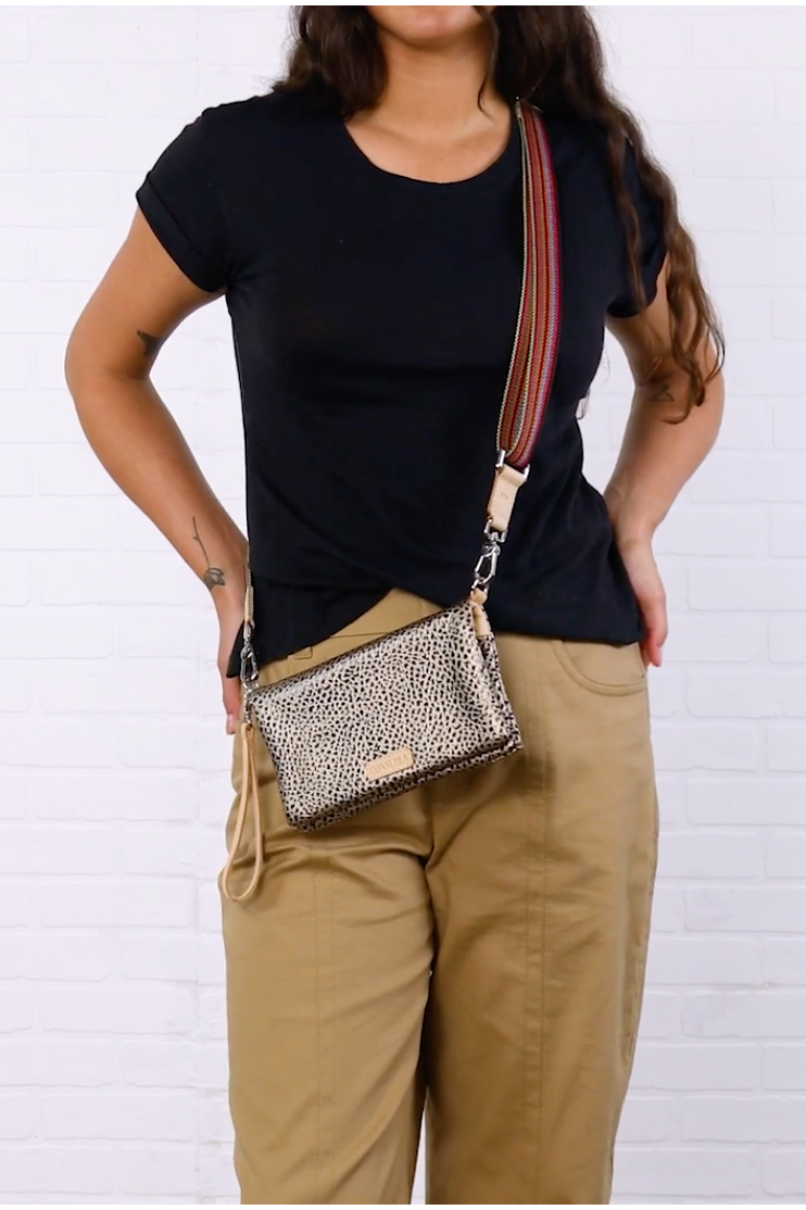 We dreamed up the best way to carry the good stuff with our new Uptown Crossbody. Here to hang in style with three zip compartments, six card holder slots, and an included wristlet strap, this crossbody can hold the necessities and more.