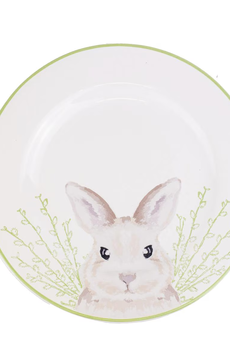 Introducing the Winston Bunny Plate in a delightful combination of white, green, and orange hues. This charming 8" plate features a playful bunny design, adding a touch of whimsy to your dining experience.