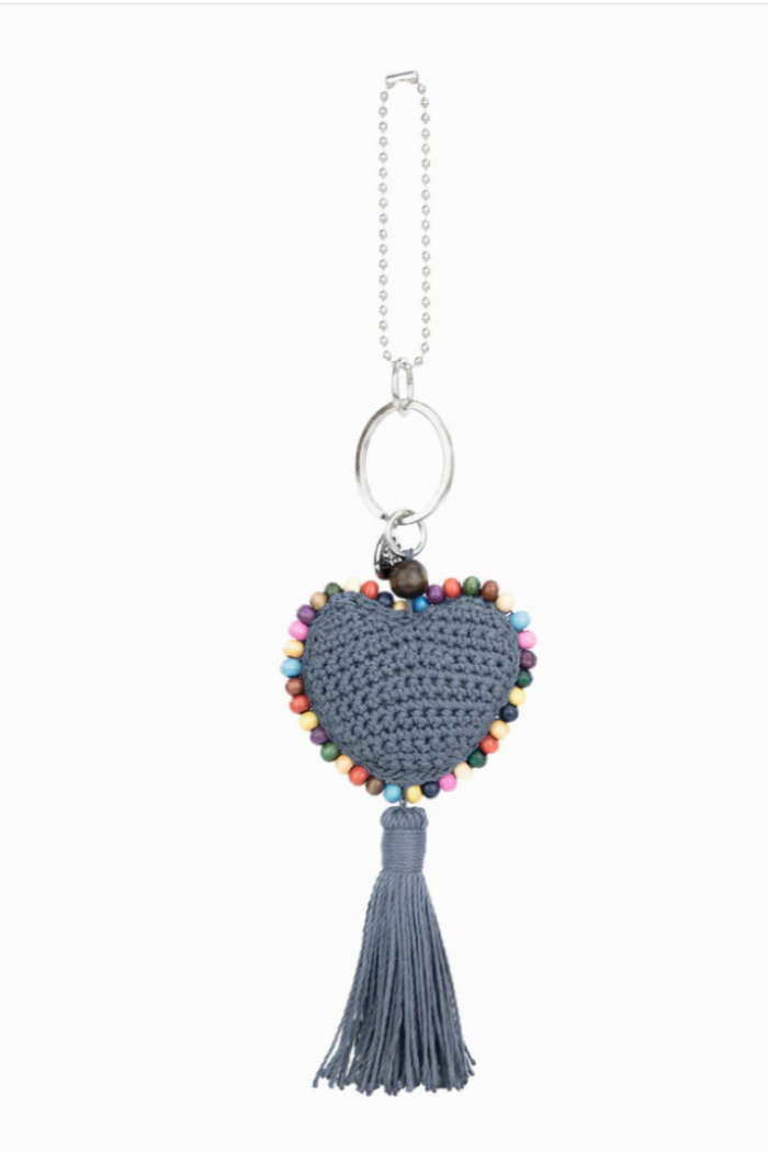 Effortlessly add an artisanal touch to your handbag. This handmade heart dangle is detailed with colorful rainbow beads and is subtly tagged with our signature hardware. Attach it anywhere for an instant touch of whimsy.
